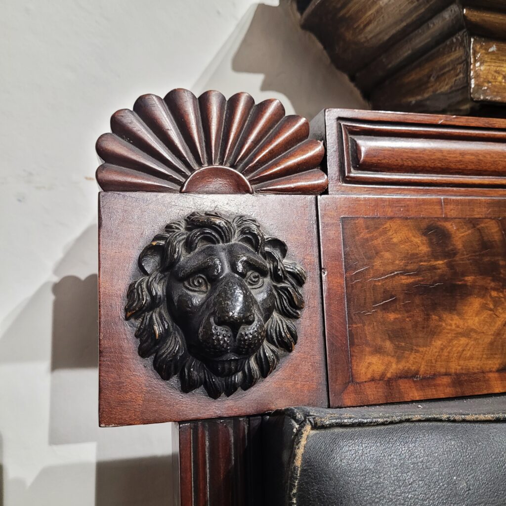 The Mayor’s Chair was used by Cambridge mayors throughout the 18th century. It was hand-crafted by local artisans and is a beautifully skilled and well-made object. The frame is mahogany, and the seat and back are made from hand-stitched leather, with the details in the arms and head being made all by hand.