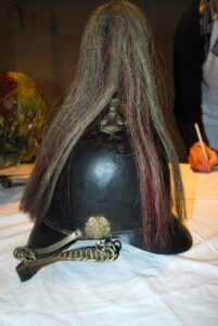 The Museum’s costume and textile collection is very eclectic, for items vary from theatrical costumes to military and Red Cross uniforms and wedding dresses to University blazers and regalia. One red military jacket and helmet, however, have particular local significance.