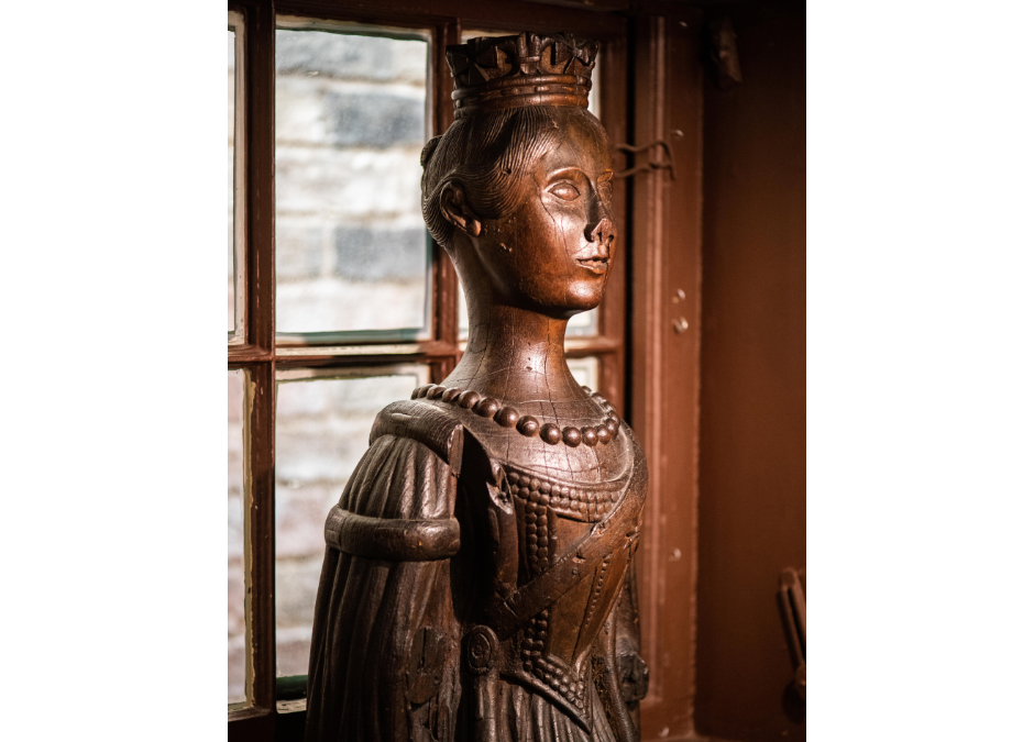 CAMFK 656.36: Carved wooden figurehead of Queen Victoria, created by a disabled person.