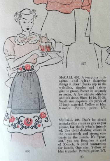 The 1936 McCall magazine also suggests using the same style of embroidery to enliven aprons: