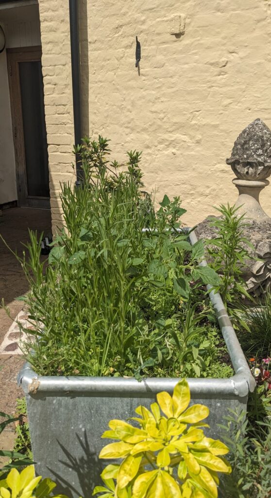 Using livestock troughs as planters, the design framed a cosy seating area. Plenty of Cambridgeshire and UK native species were chosen to attract pollinators and provide seasonal colour and interest. This included two special mixes of wild meadow seeds, which are taking root this summer.