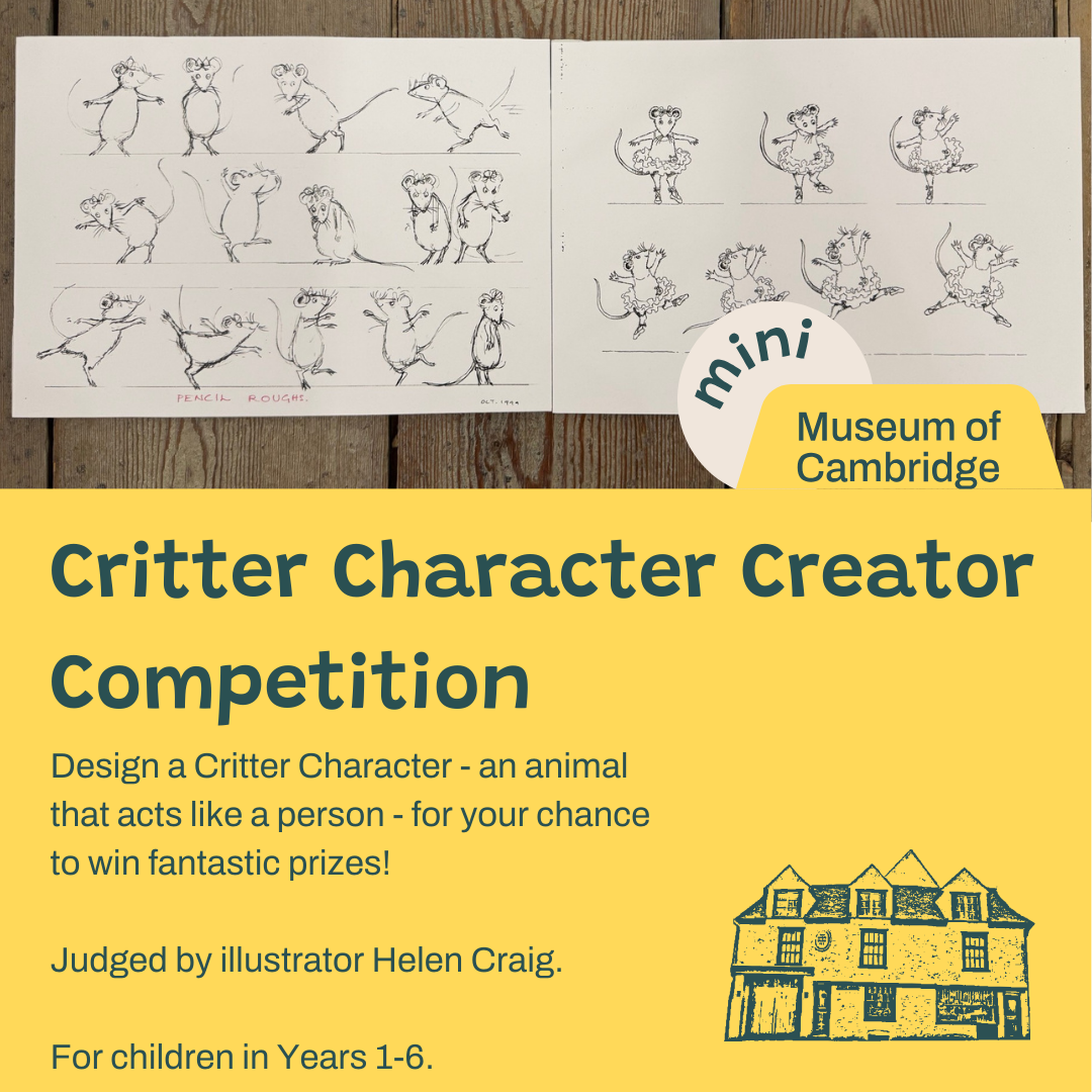 This competition is for children in Years 1-6, limited to one entry per child. Children must attend a school in Cambridgeshire, or be otherwise educated in Cambridgeshire. The prizes are non-monetary and awarded at the discretion of Helen Craig and the Museum of Cambridge. Entries should be completed on the provided page attached below – no more than one side of A4 – and include a contact email address for an adult responsible for the child’s entry. Winners will be contacted via the provided email address. Data will only be stored for this purpose, in compliance with GDPR and the Museum of Cambridge’s Privacy Policy.