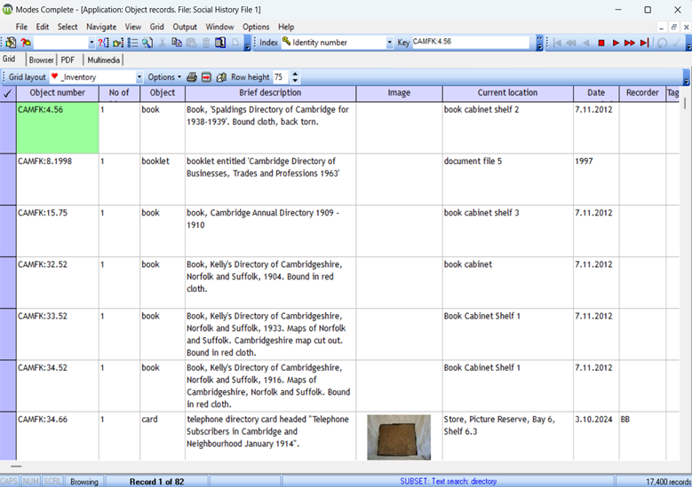 A significant part of my role involved cataloguing accessions relating to local Cambridge history using the Museum’s Modes database. This required careful attention to detail to ensure each entry was accurate and comprehensive. Proper cataloguing is essential for accessibility, allowing researchers, staff, and the public to locate objects and understand their historical context. Working with the database highlighted the importance of digital record-keeping in maintaining both accuracy and long-term preservation.