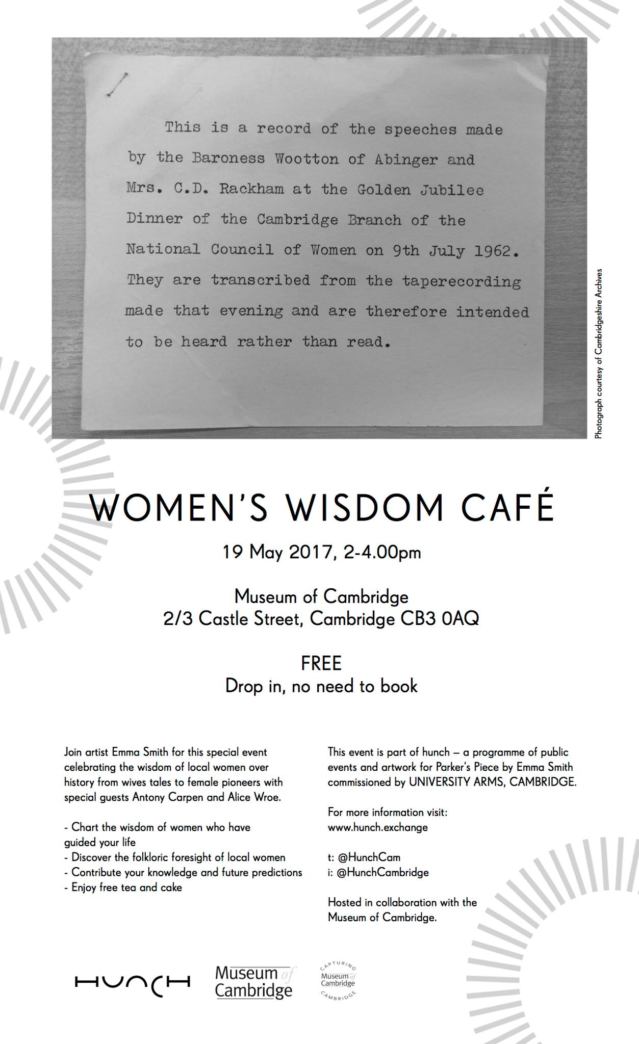 This event is part of hunch – a programme of public events and artwork for Parker’s Piece by Emma Smith commissioned by UNIVERSITY ARMS, CAMBRIDGE.