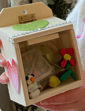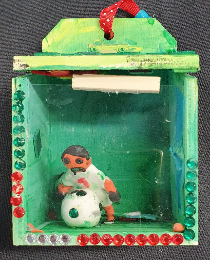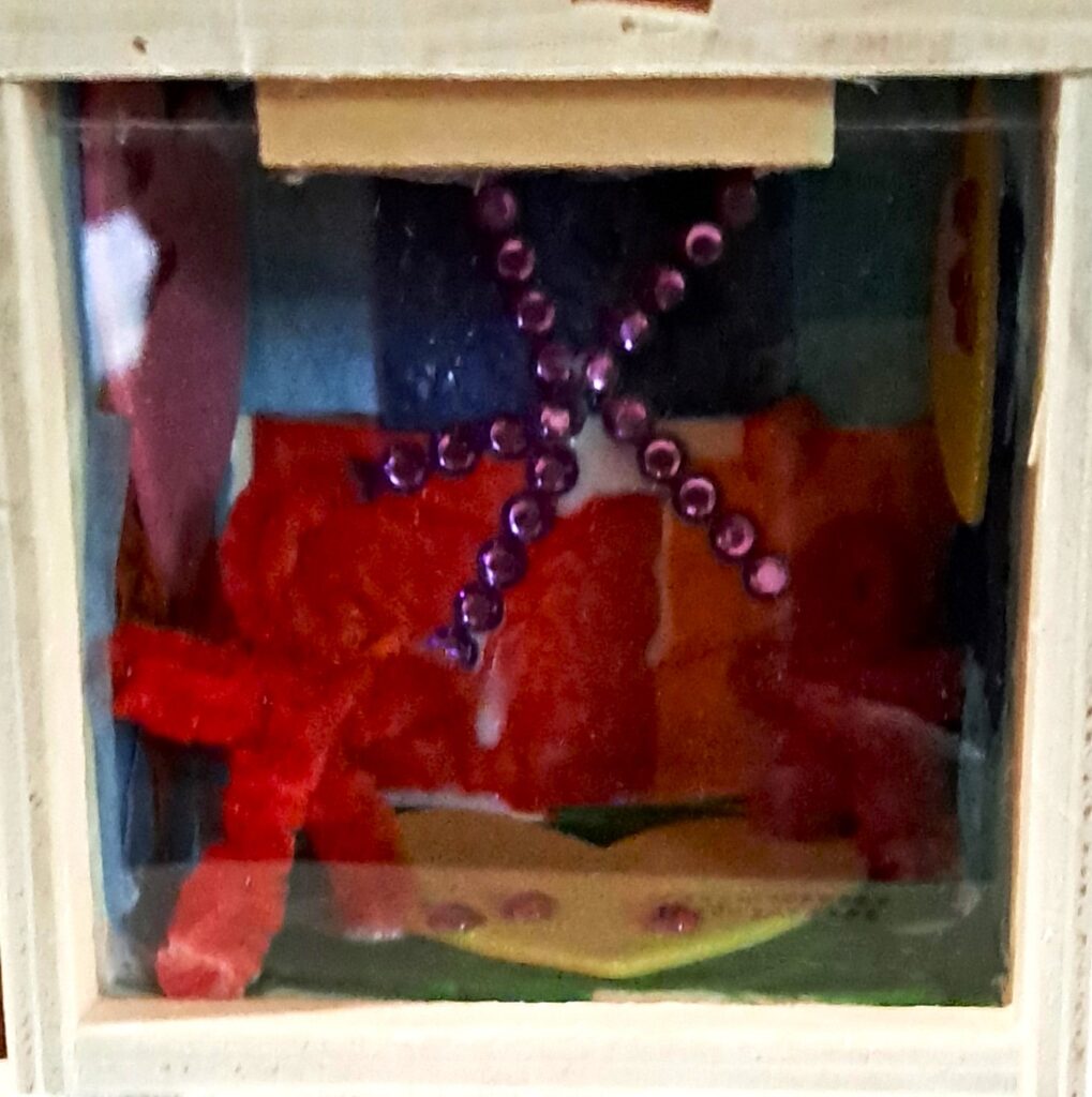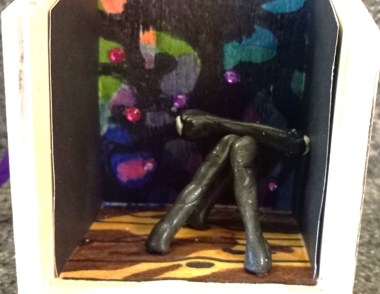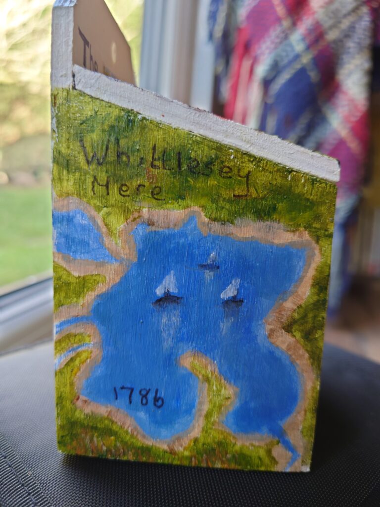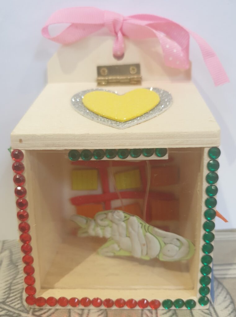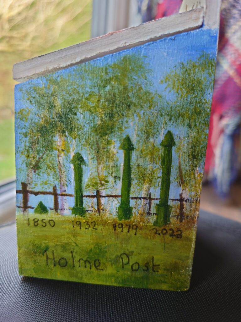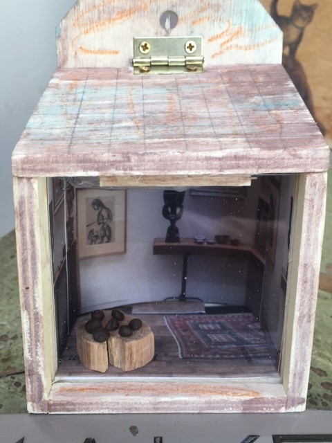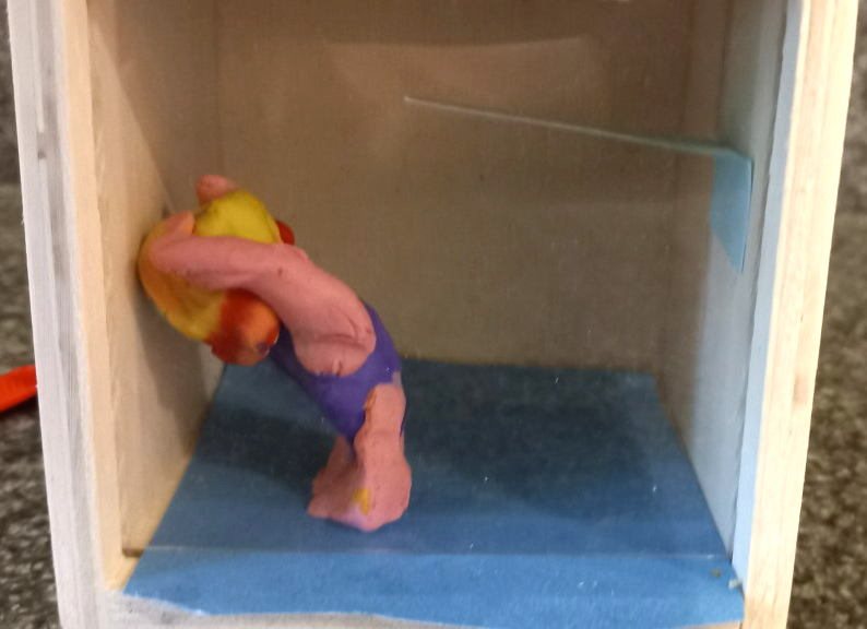 “I chose the beautiful Fens with amazing sunsets, as my subject. I hope to depict the drainage of the fens that started with draining Whittlesey mere. Then the shrinkage of the peat. Marked with the Holme post at Holme Fen. In the middle of the box is Rothschild’s bungalow that is in the beautiful Woodwalton fen. Charles Rothschild and his daughter spent a lot of time there studying wildlife. The bungalow is on stilts and the post on the lid show the soil and water levels over different years.”