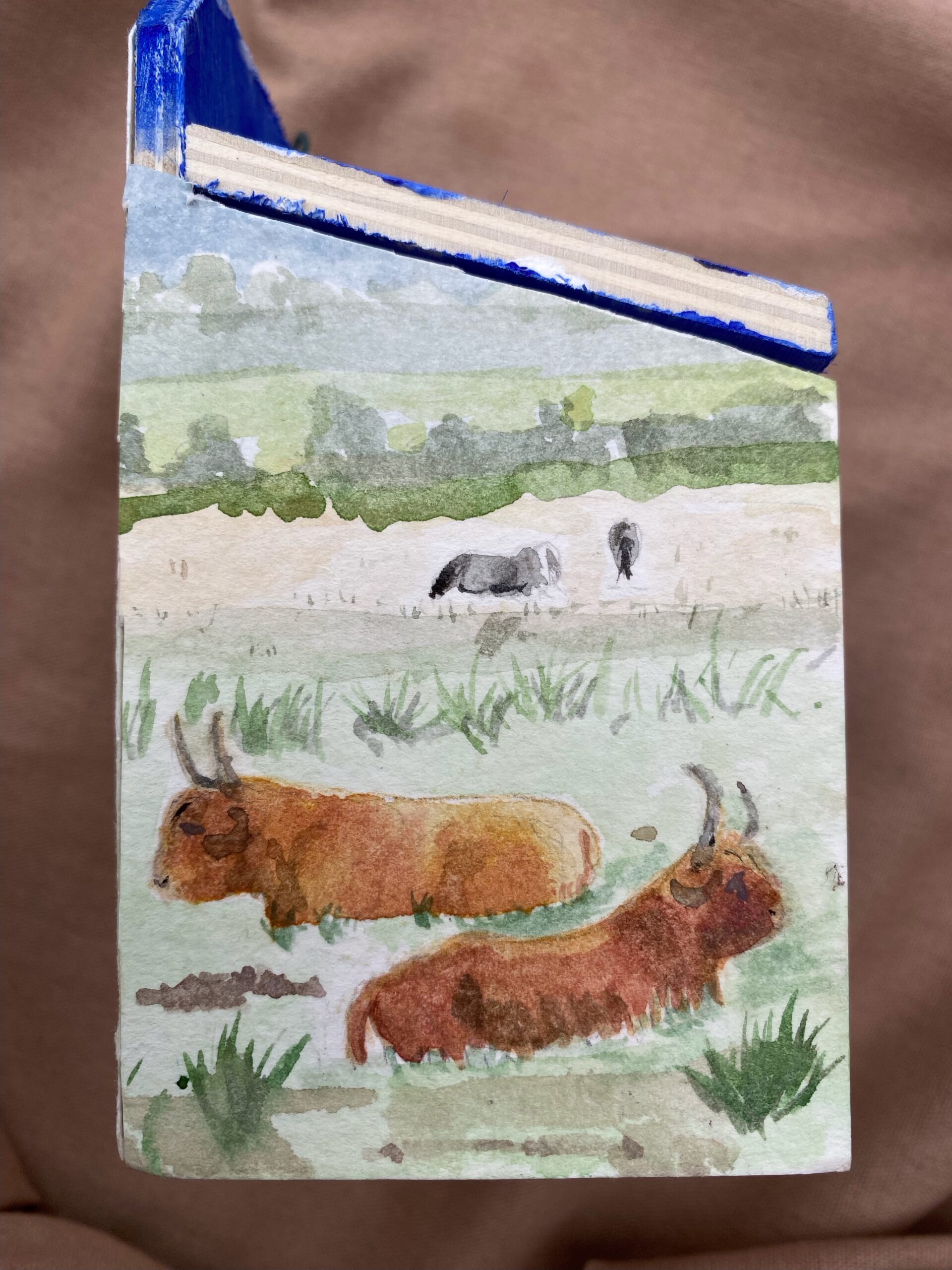 “Just chilling with nature in Wicken Fen: heron, dragonfly, swallowtail, fish, konik ponies & highland cattle.”