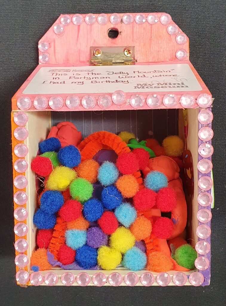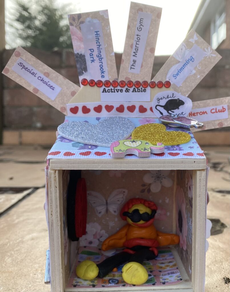 “This is the Jelly Mountain in Partyman World where I had my birthday.”“Summer stroll along the River Cam, ducks and swans.”“I love Gymfinity!”“I love my cat, our cargo bike, my garden & the snowman we built last winter!” “We love Jack’s Gelato!” “Punting on the Cam.”“I love going to my clubs: Heron Club, Special Choices, Active & Able, The Marriot Gym, Swimming, Gerbils and Hinchingbrooke Park.” “I love the book stack sculptures outside the University Library.”“The walkway at Flag Fen.”“I love riding my bicycle in Cambridge.”“Jarman Centre, camping with Guides, includes tent, bedding roll, campfire and s’more.”“Brownies at ‘Sleeping under the Wings’ at IWM Duxford, with mini aeroplane too!”“Central Library – always gives you peace and quiet.”