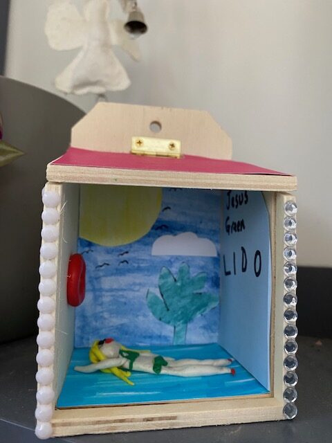 “Canoeing on the River Cam”“Jesus Green where me and my mum love to take our kite on a windy day. It’s also where I practised riding my first pedal bike just before my third birthday and where we hung out with my Dad during lockdown.” “I was rather sad to see Park Street Car Park go. Park Street represented our collective love of the underdog. The car park always felt – to me, without any real interest in architecture – like it’d one day be considered an iconic example of architecture of it’s era, from the harsh concrete material to the gloriously old-fashioned fonts on some of the signage, if only it could have made it past that period all buildings go through when they’re no longer modern, but not yet historic. The upright concrete pillars always – to me – resembled tall reeds at the edge of a river, allowing you to peek through at the cars, like peeking through the reeds to the ripples on the water.”“Enjoying a dip at the lido, meeting friends for a refreshing cold swim. ““Mum, Dad and me playing Carcassone board game”“Trumpington Meadows”“Family tennis match”“I love my local park!”“I love my school.”