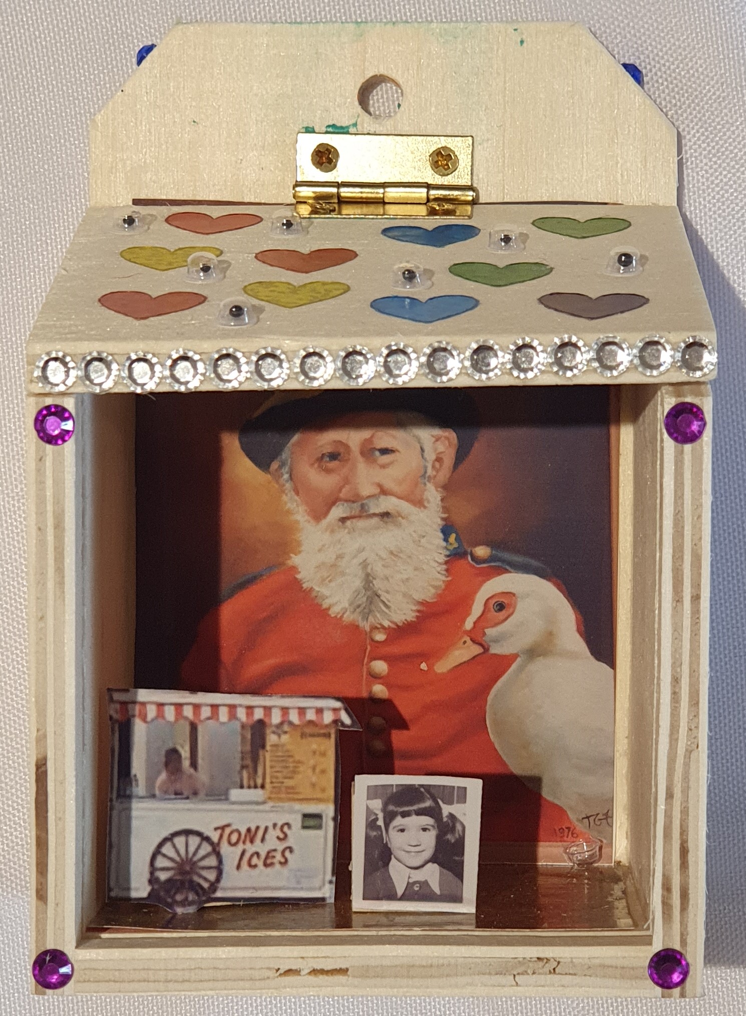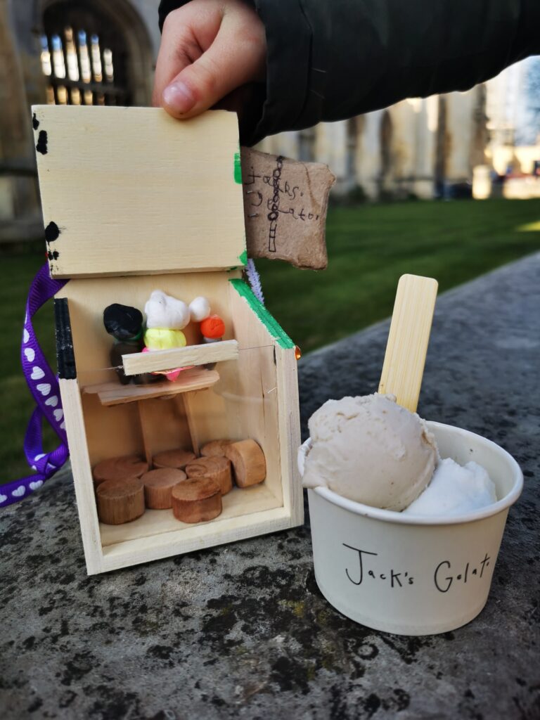“This is a 5 year old me, coming to Cambridge to see Snowy Farr and eating pistachio ice cream. Snowy is a painting from my Nana.”